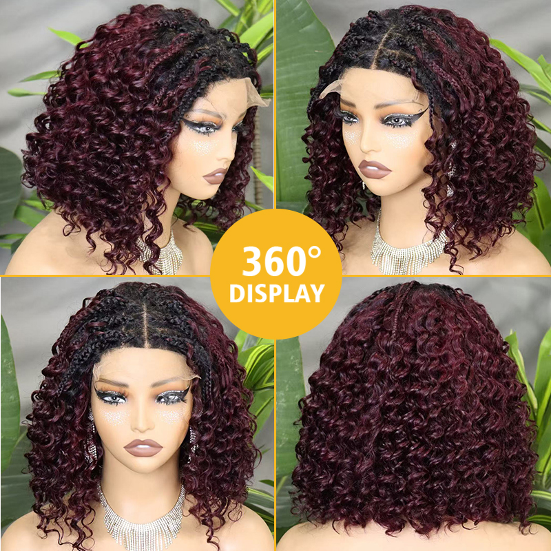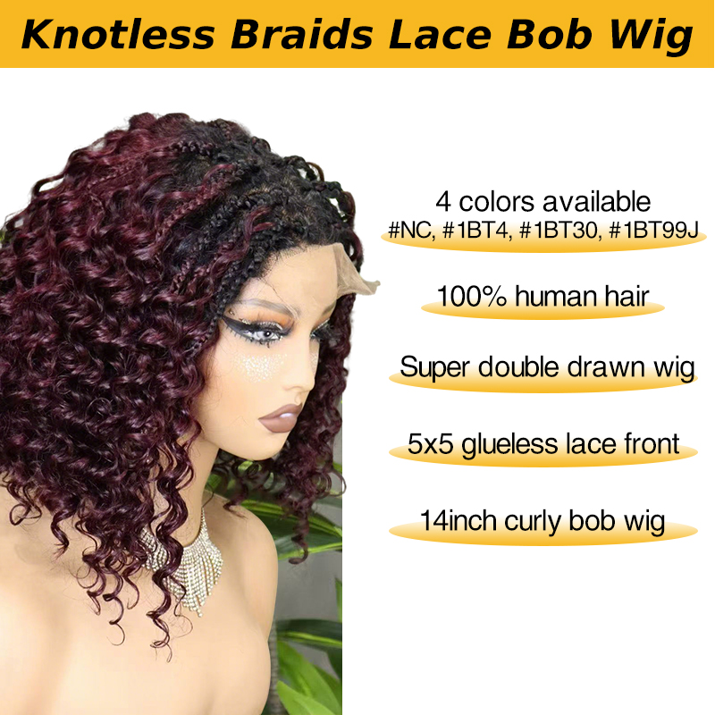 FH 14inch 5x5 lace front knotless braids human hair bob wig-1BT99j