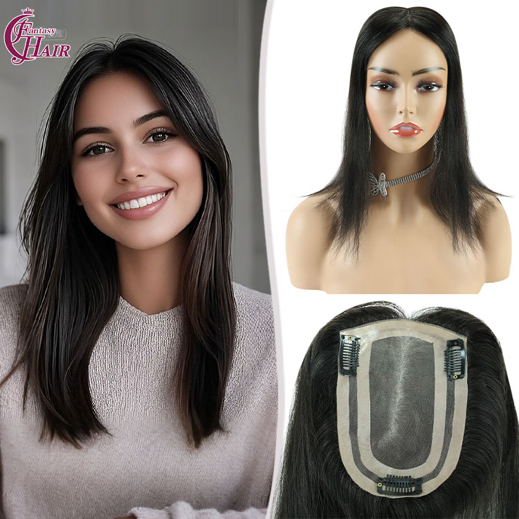 FH #1B Human Hair Toppers Mono PU Hairpiece for Women