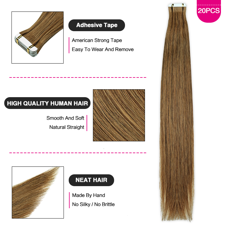 FH #30 brown colored double drawn Russian remy tape in hair extensions