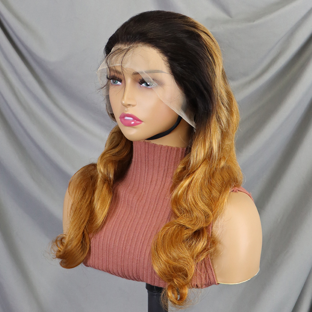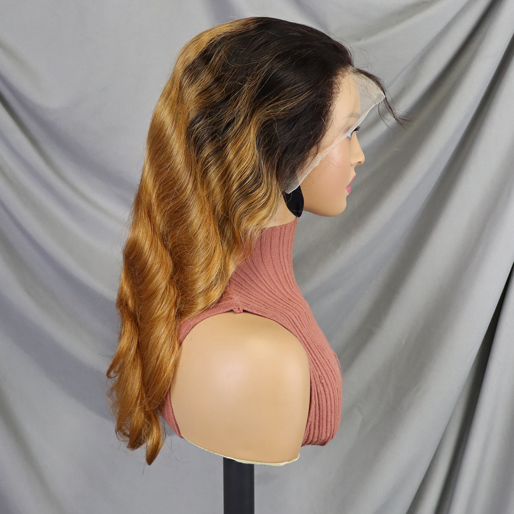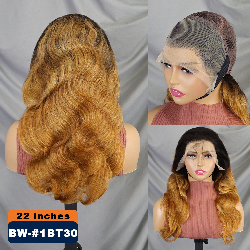 FH body wave human hair wigs #1BT30 color 13x4 transprent lace frontal hair wig