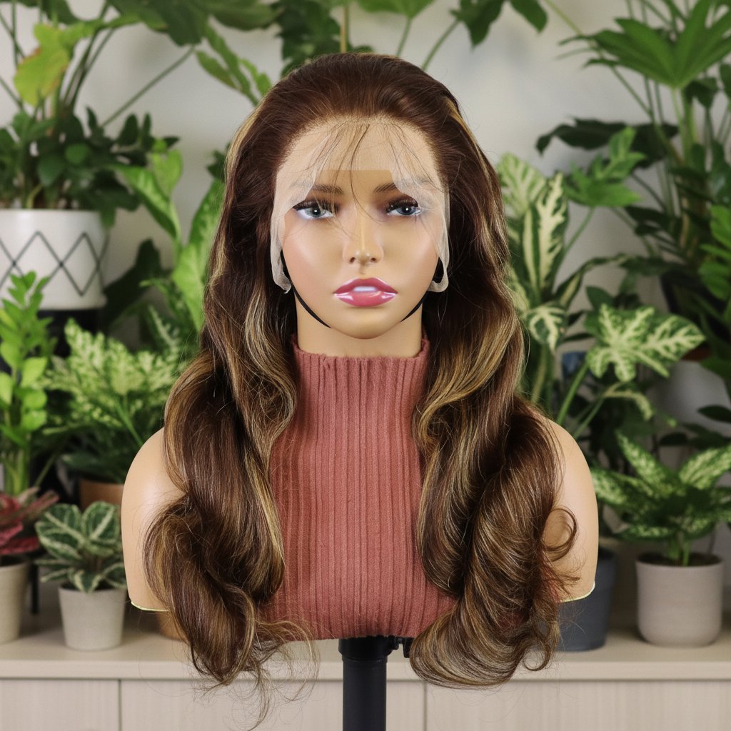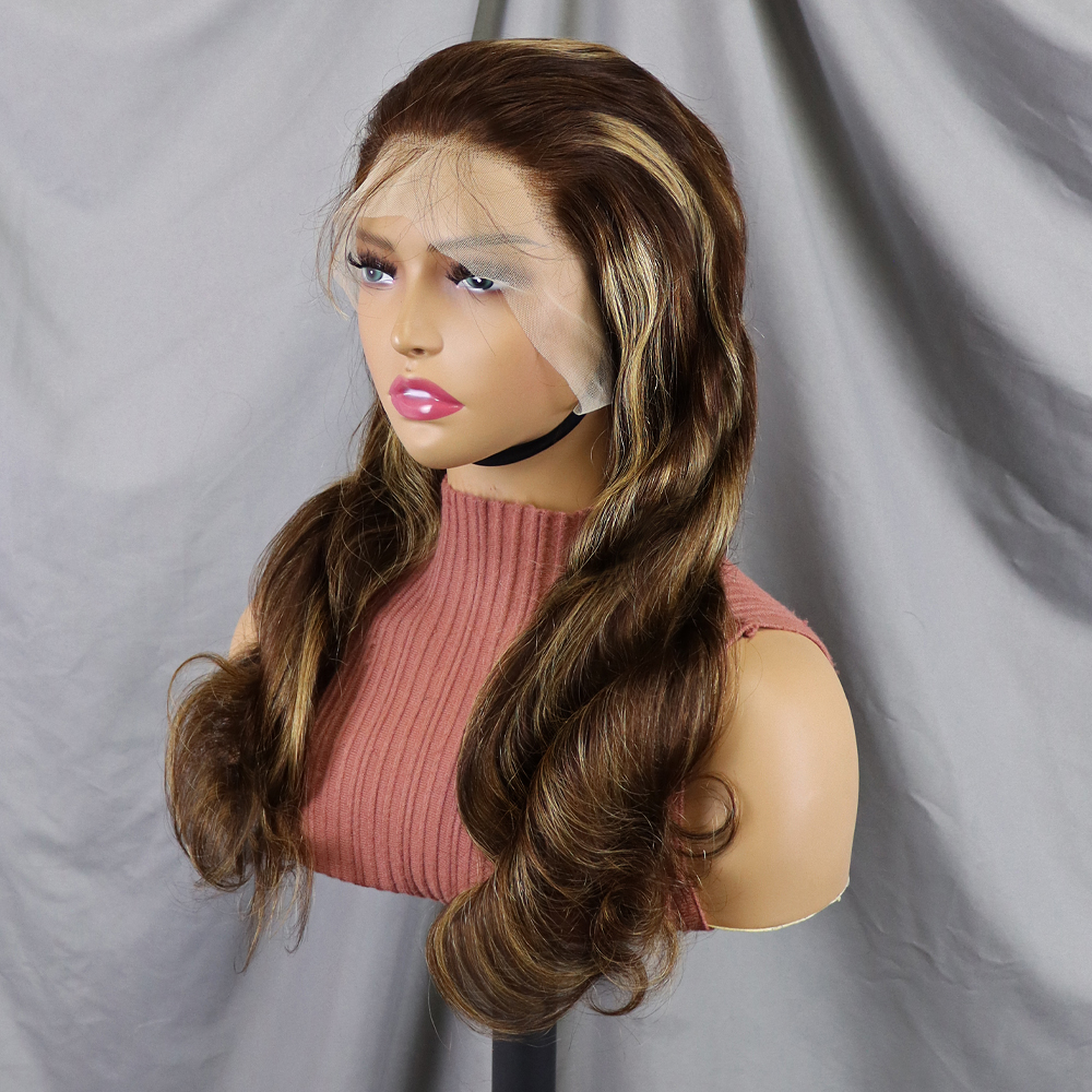 FH body wave human hair wigs #P4/27 Highlight 13x4 transprent lace frontal hair wig
