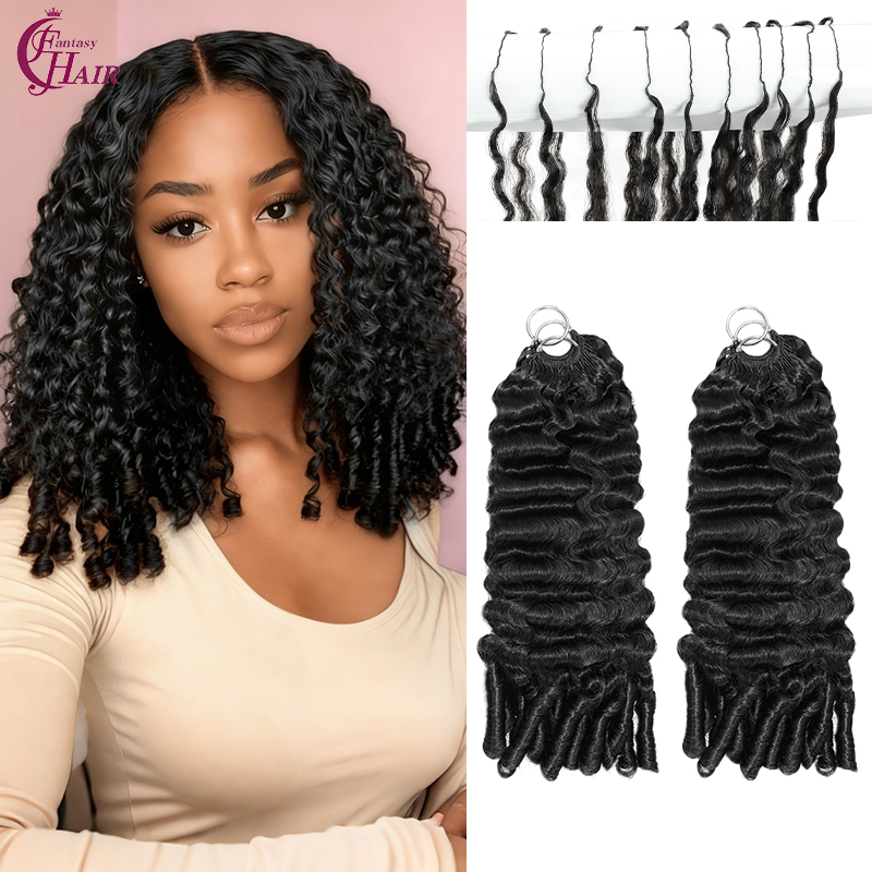 FH Burmese Curly With Spiral End Feather Crochet Human Hair Extension No weft Bundles