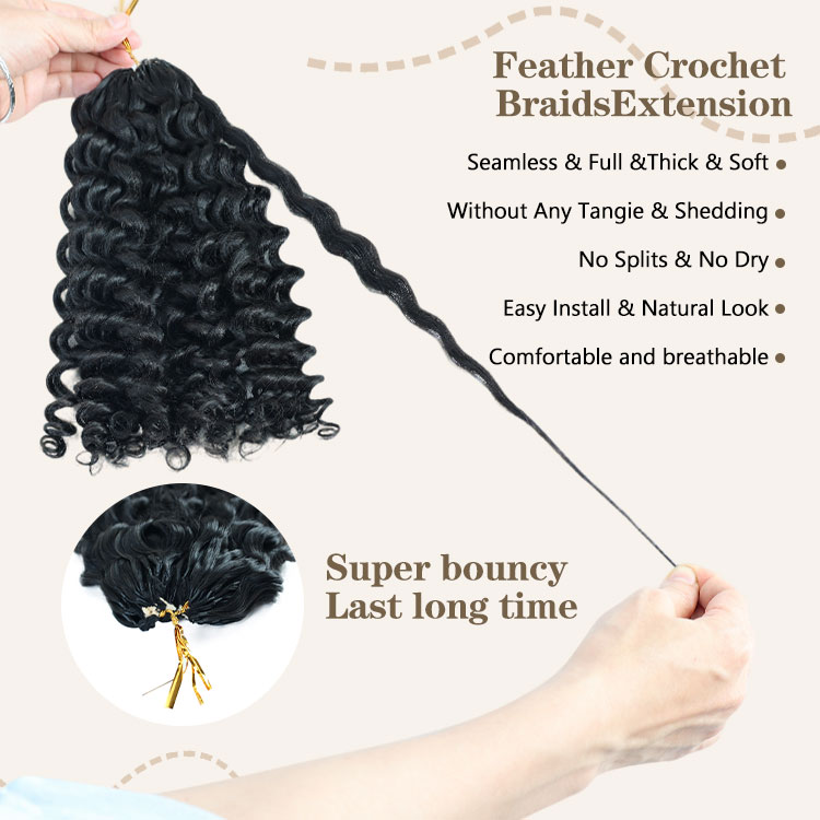 FH Deep Curly Feather Crochet Human Hair Extension No weft Bundles for Braids