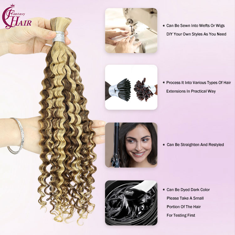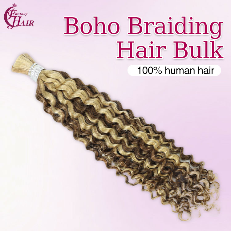 FH direct wholesale 100% human hair bulk #P4/27/30 deep curly boho braids hair extensions