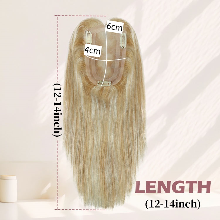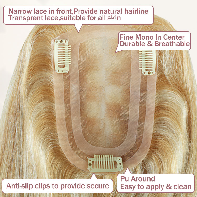 FH #P27/613 Highlight Human Hair Toppers Mono PU Hairpiece for Women