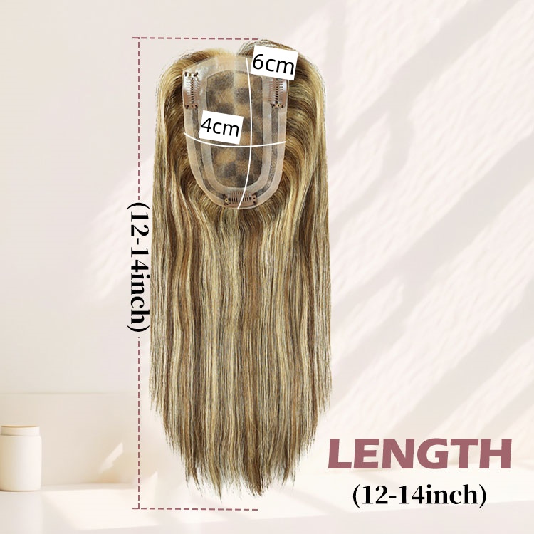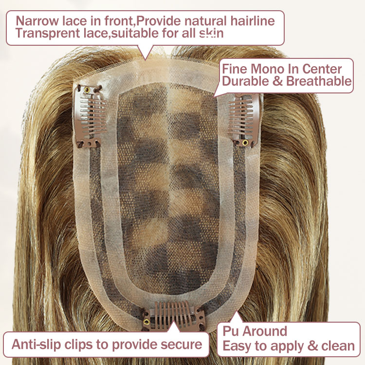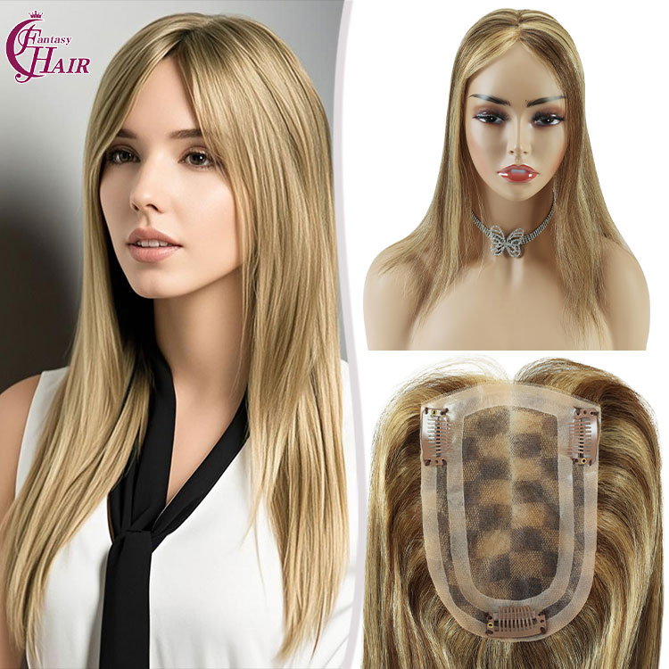 FH #P4/27 Highlight Human Hair Toppers Mono PU Hairpiece for Women