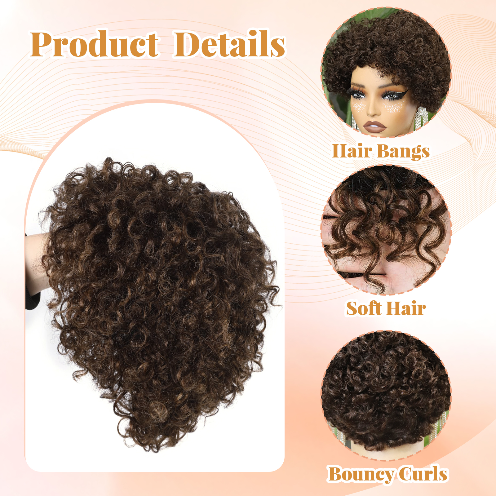 FH Short Pixie Wig Human Hair Kinky Curly Glueless Wigs for Women No Lace