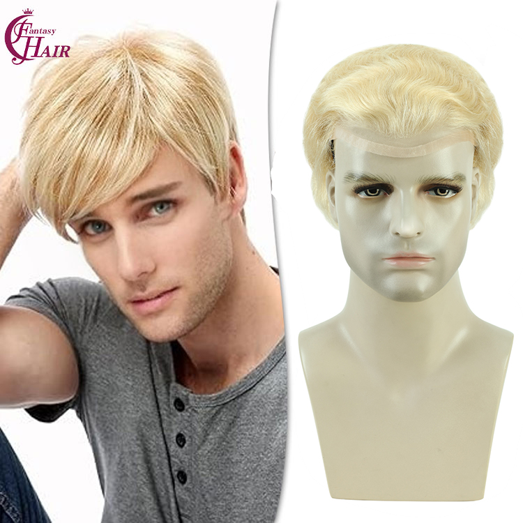 FH Wholesale #613 Blonde Lace+Pu+Mono HM Men Toupee Human Hair 10x8 inch Base Extra Thin Replacement System